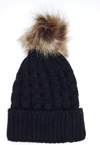Amazon Co Jp フェイクファー ボンボン付 ケーブル編み ニット帽 ブラック レディース メンズ シンプル 帽子 キャップ ハット ビーニー ジュエリー